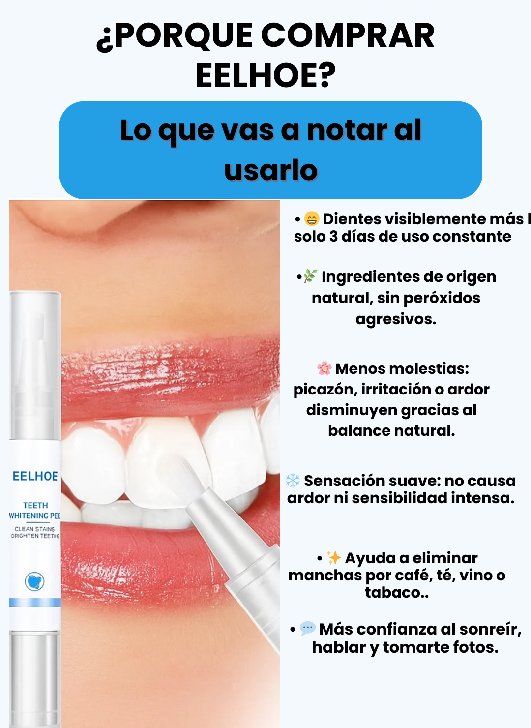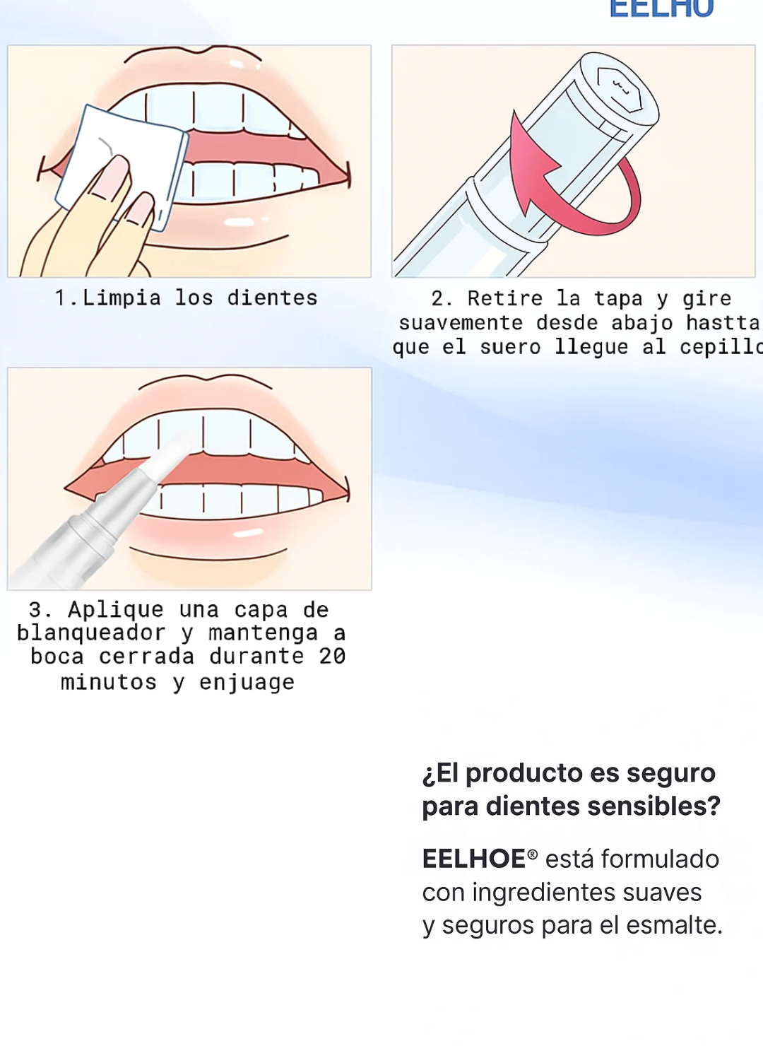 Está formulado para ser suave y apto para dientes sensibles, sin peróxidos agresivos.